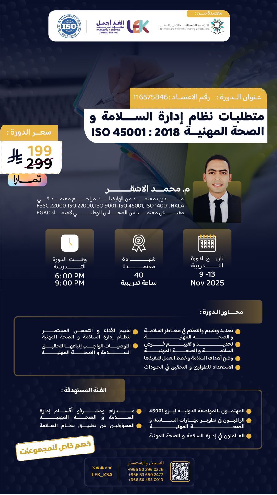 1️⃣1️⃣ متطلبات نظام إدارة السلامة والصحة المهنية 2018 :ISO45001