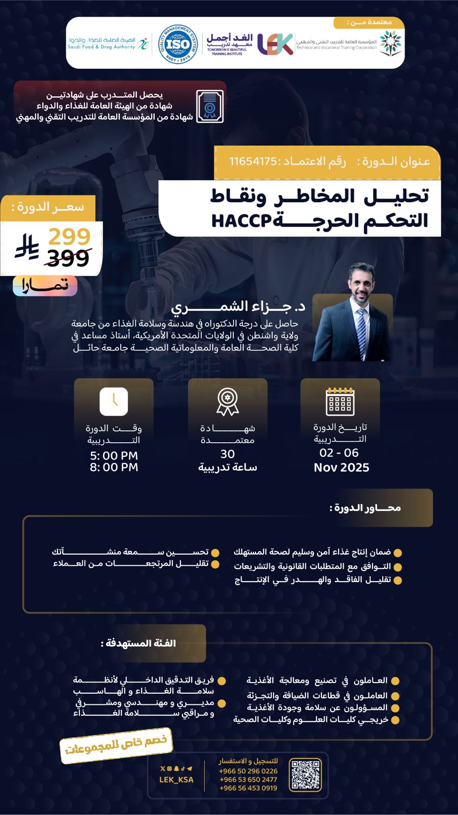 1️⃣1️⃣تحليل المخاطر ونقاط التحكم الحرجة HACCP -