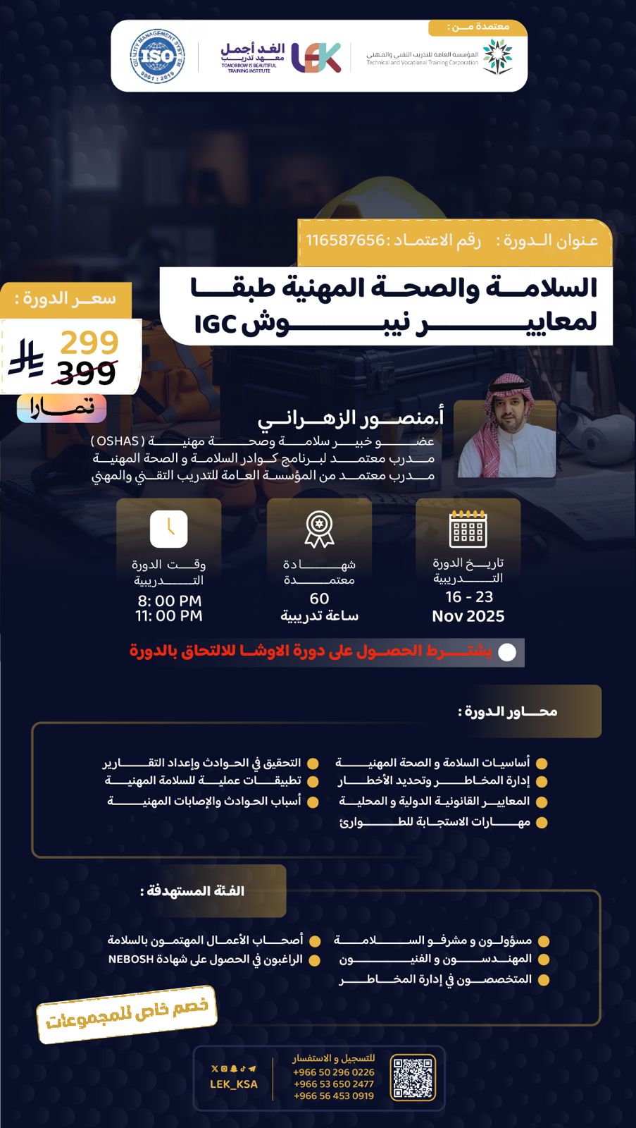1️⃣1️⃣السلامة والصحة المهنية طبقا لمعايير نيبوش IGC -