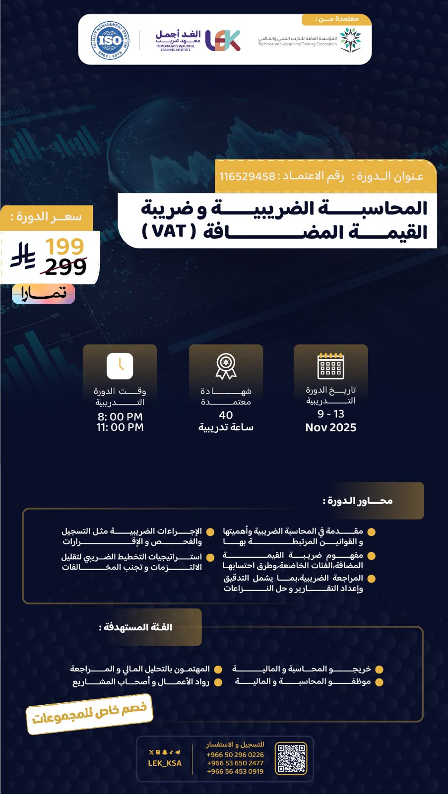 المحاسبة الضريبية وضريبة القيمة المضافة (VAT) - 1️⃣1️⃣
