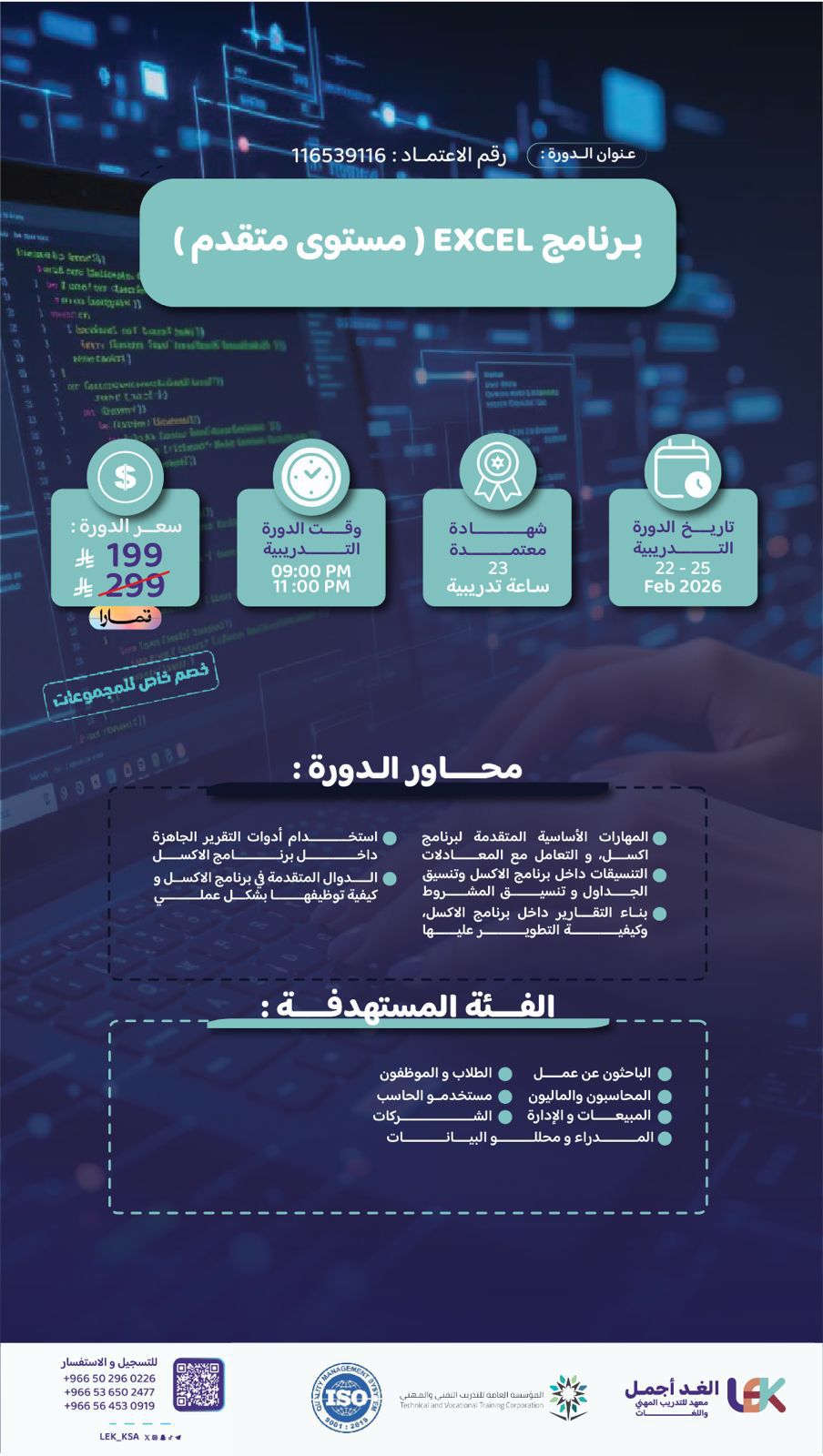 برنامج EXCEL (مستوى متقدم) - 2️⃣