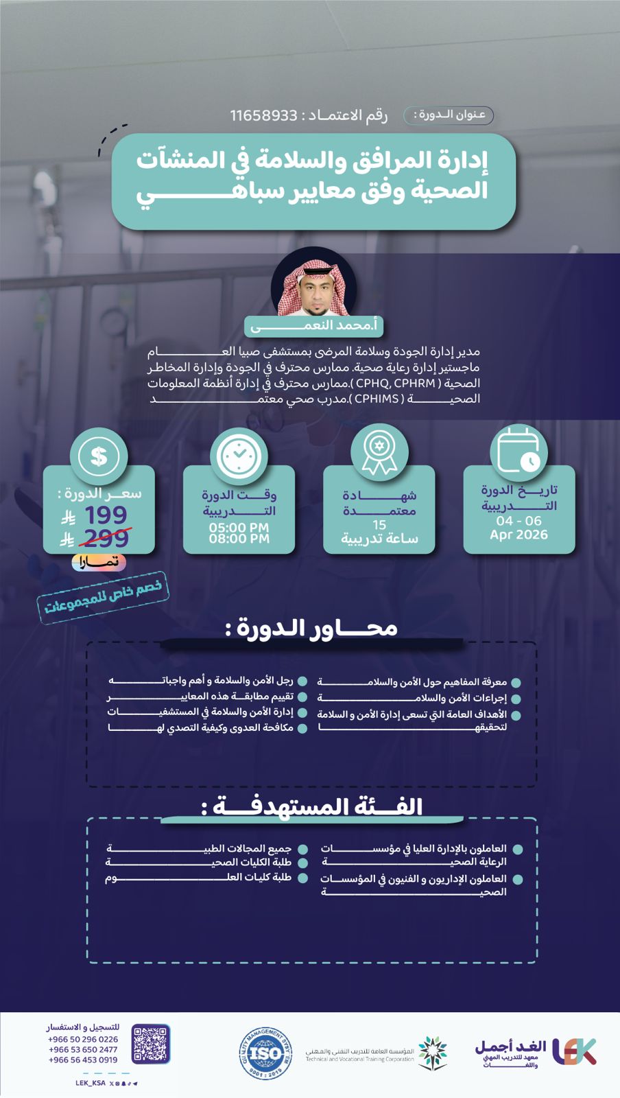 إدارة المرافق و السلامة في المنشآت الصحية وفق معايير سباهي - 4️⃣