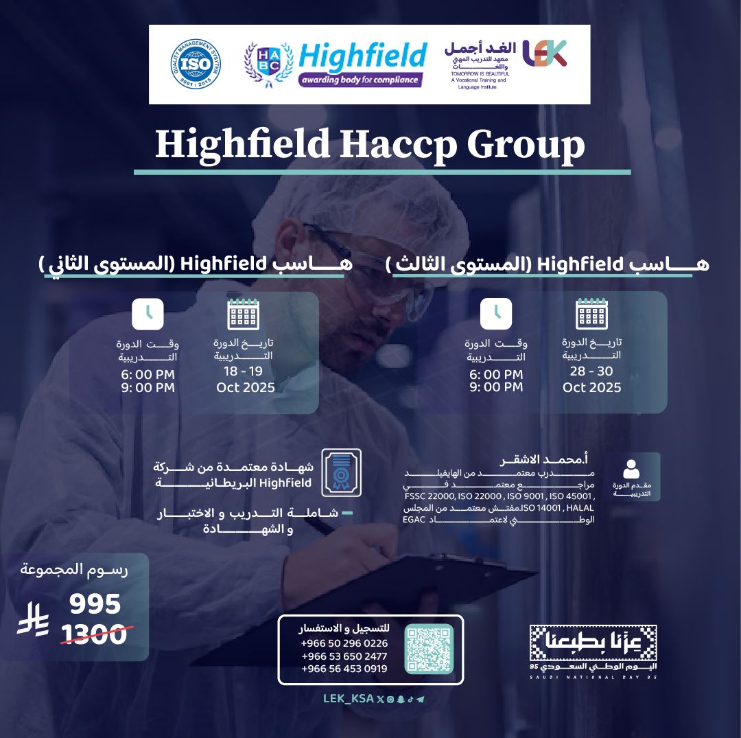 (Food Safety Level ( 3 )- 9️⃣ - هاسب Highfield ( المستوى الثاني) 🔟 - Food Safety Level ( 4 )- 1️⃣1️⃣ - هاسب Highfield ( المستوى الثالث) - 🔟)