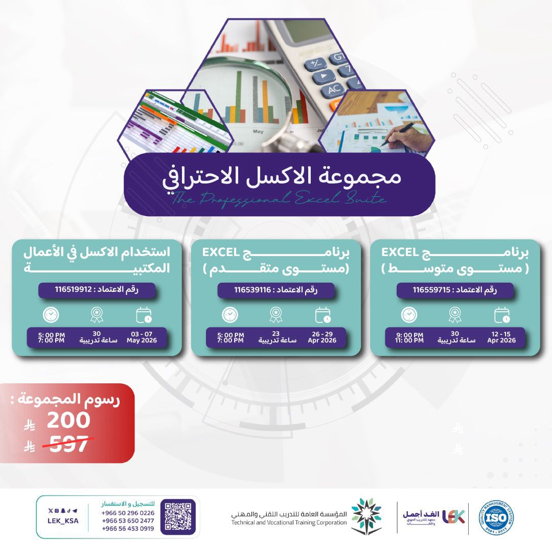 (برنامج EXCEL (مستوى متقدم) - 3️⃣ - استخدام الاكسل في الأعمال المكتبية - 5️⃣ - برنامج EXCEL ( مستوى متوسط ) - 5️⃣)
