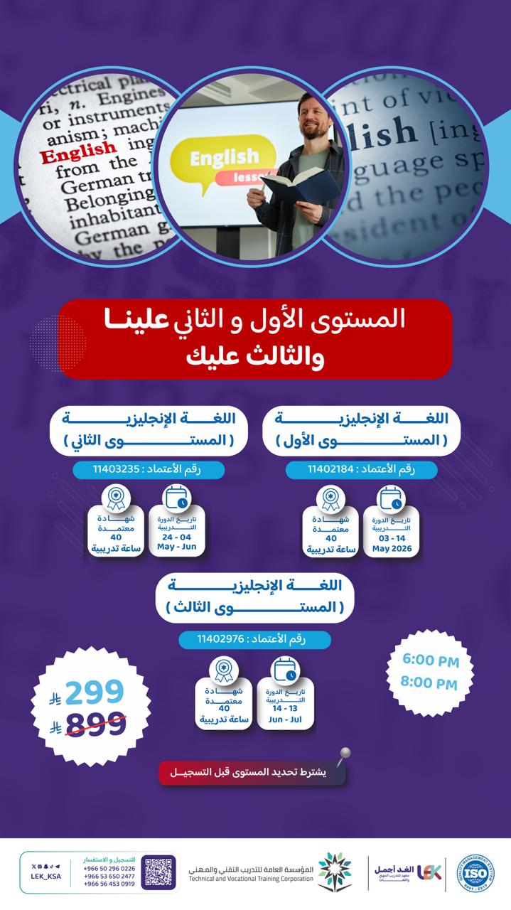 (اللغة الإنجليزية ( المستوى الأول ) 5️⃣ - اللغة الإنجليزية ( المستوى الثاني ) 5️⃣ - اللغة الإنجليزية ( المستوى الثالث ) 5️⃣)