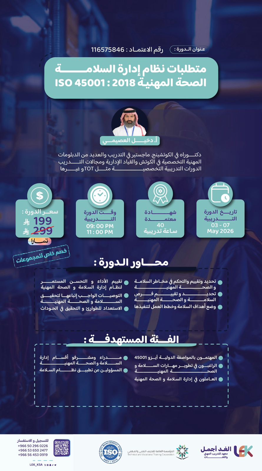 5️⃣متطلبات نظام إدارة السلامة الصحة المهنية ISO 45001 :2018