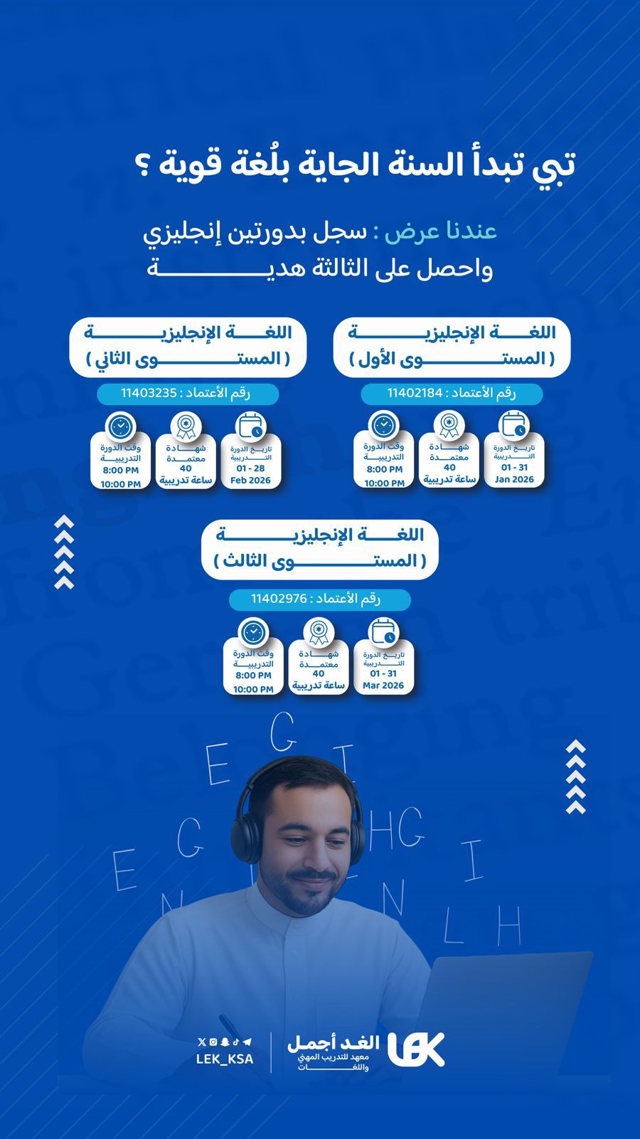 (اللغة الإنجليزية ( المستوى الثاني ) 2️⃣ - اللغة الإنجليزية ( المستوى الثالث ) 3️⃣ - اللغة الإنجليزية ( المستوى الأول ) 1️⃣)