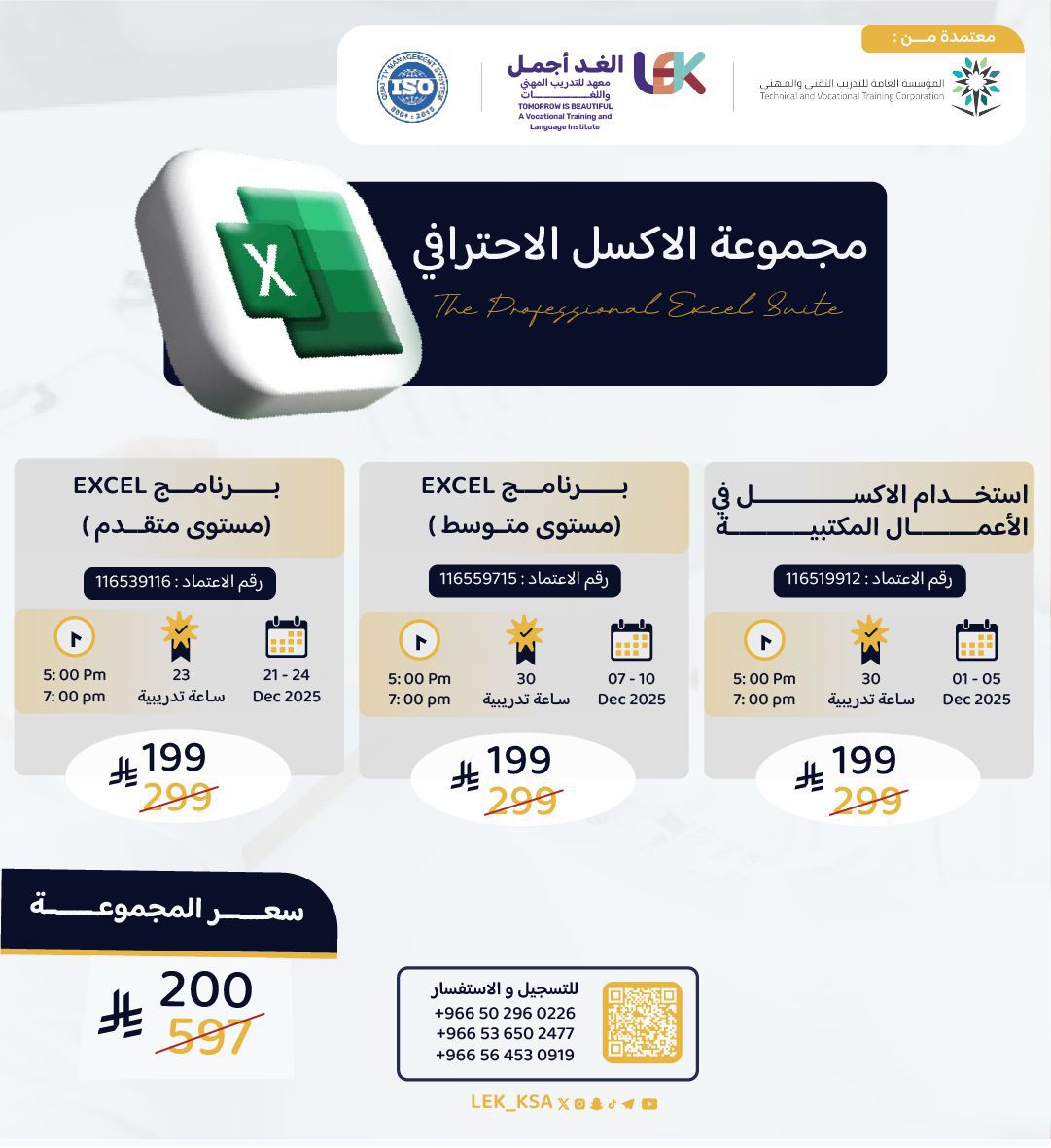(برنامج (EXCEL) "مستوى متوسط " 1️⃣2️⃣ - برنامج EXCEL (مستوى متقدم)1️⃣2️⃣ - استخدام الاكسل في الأعمال المكتبية - 1️⃣2️⃣)