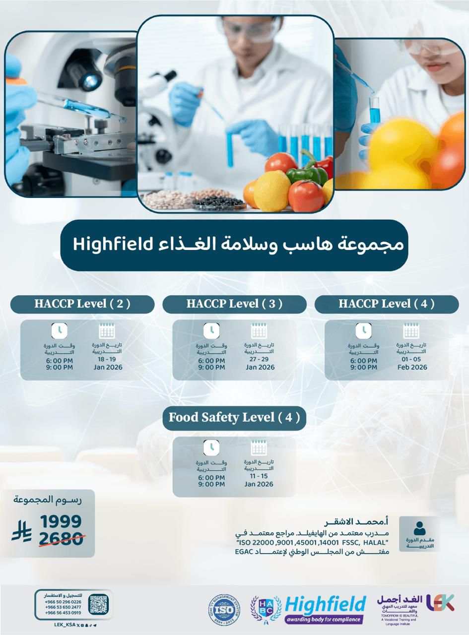 (هاسب Highfield ( المستوى الثاني) 1️⃣2️⃣ - هاسب Highfield ( المستوى الثالث) 1️⃣2️⃣ - Food Safety Level ( 4 ) - 1️⃣2️⃣ - HACCP Level (4) -2️⃣)